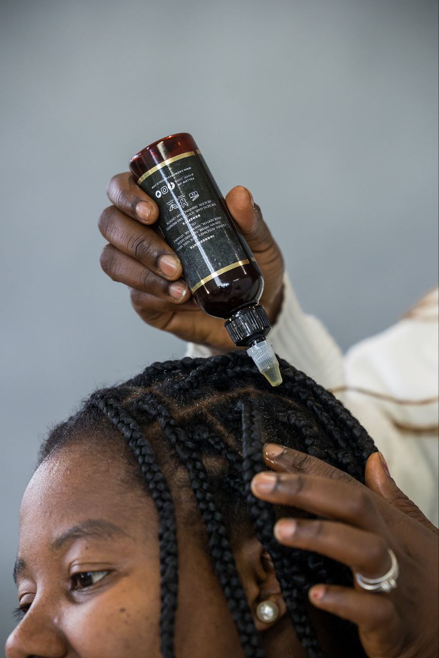 This incredible hair growth oil, works well as a finishing product when applied to dry hair, reducing the appearance of split ends and frizz, visible damage.